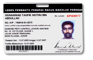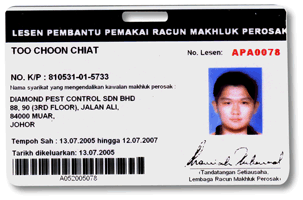 Under the Pesticides (Pest Control Operator) Rules 2004, a person carrying out any of the following activities or engage in the business of applying pesticide to the property of another for hire must at any time possess the relevant license issued by The Pesticides Board of Malaysia, which include: