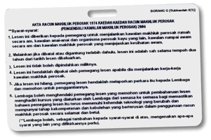 Under the Pesticides (Pest Control Operator) Rules 2004, a person carrying out any of the following activities or engage in the business of applying pesticide to the property of another for hire must at any time possess the relevant license issued by The Pesticides Board of Malaysia, which include: